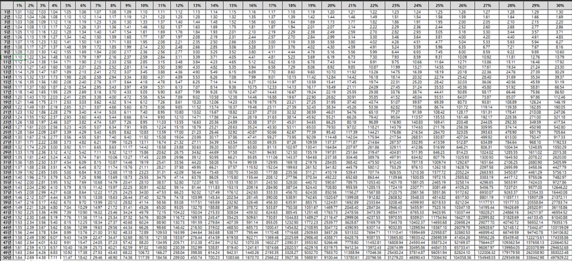 즉, 1만원으로 5년간 11%의 복리수익률은 1.69만원이 된다.